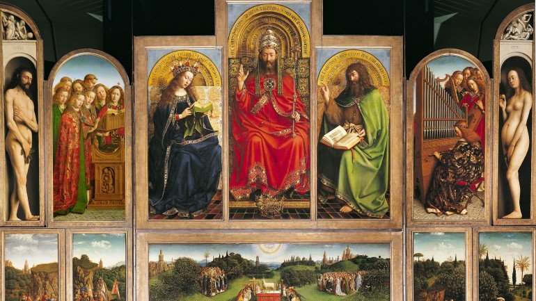 Ao longo de quase 600 anos, o trabalho dos irmãos van Eyck sobreviveu a incêndios, a ataques de iconoclastas furiosos com o culto de imagens religiosas e a 13 crimes no total, entre os quais um roubo durante as Guerras Napoleónicas e outro na Segunda Guerra Mundial.Os nazis esconderam os painéis desmontados, juntamente com outras sete mil obras, numa mina de sal, história que pudemos ver recentemente no cinema com o filme “The Monuments Men — Os Caçadores de Tesouros”. Lá está o “Retábulo de Gent”, aos 20 segundos do trailer: